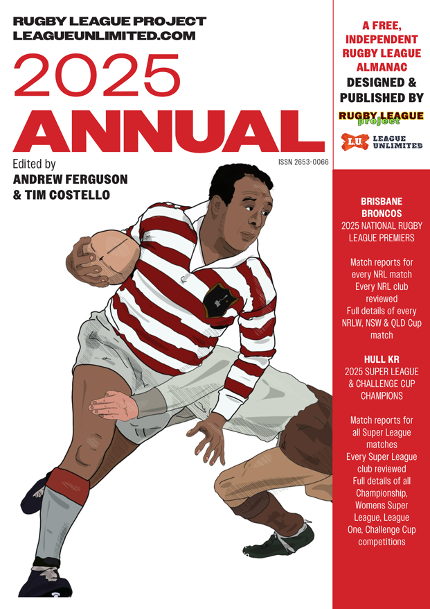 Happy New Year once again! We're very proud to announce the sixth edition of Andrew Ferguson & Tim Costello's Rugby League Annual. As always you will find the most comprehensive summary of the rugby league season by far, with detailed results, match-by-match reports with scorers and teams, team summaries and breakdowns, as well as a look back at the first 30 years of Super League, a glorious tribute to Sir Billy Boston and so much more. Available now to read for free online, or download in PDF format.